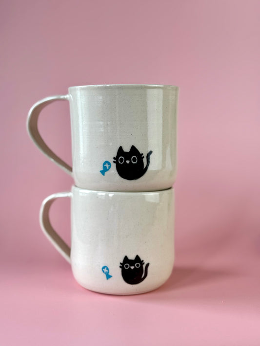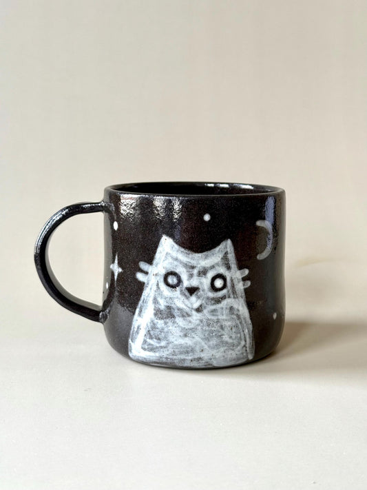Black Clay Spooky Mountain Cat Handmade Unique Mug