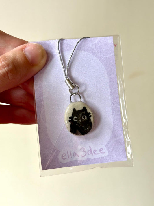 Black Cat Speckled Ceramic Charms | Phone Strap, Necklace, Jewellery